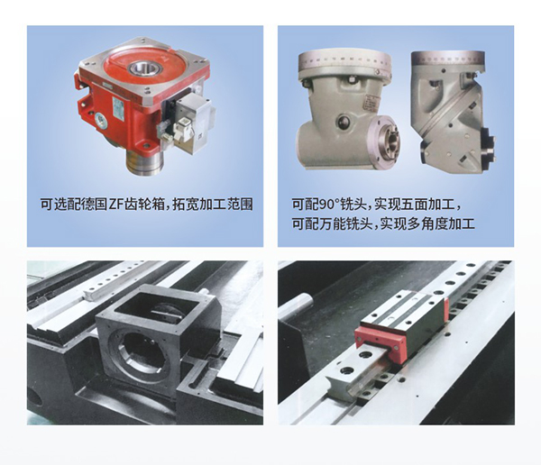 主要用于平面(曲面)和孔的加工,对(大型)箱体机身类复杂零件进行粗精加工和对大修机床的导轨进行铣削等。 根据加工需要可配置多种附件头, 一次装夹可以对工件的五个面进行铣、镗、钻、较、攻丝等工序加工。 该机床具有合理的结构、可靠的精度、完整的配套。部件设计采用模块化,具有良好的互换性、稳定的质量。 机床设计先进、性能可靠、操作简单、维修方便。 满足通常的铣,钻,攻,镗,内圆、外圆、台阶、锥面、球面、沟槽、和2D 或 3D 复杂曲面的加工,能够满足各类高温合金、钛合金、耐热合金、不锈钢、铸铁、铸钢等材料的铸锻件毛坯件的粗、精加工。系统刚性好,可靠性好,精度高,寿命长。 能可靠稳定地完成高精度难加工材料的粗、细、精加工,可加工各种难切削材料零件型面的数控加工, 一次装夹可以实现工件的粗、半精加工及精加工。产品应用